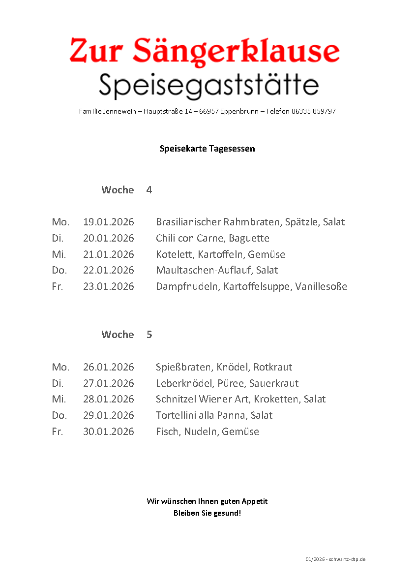 Speisekarte Wochen 04/05 2026