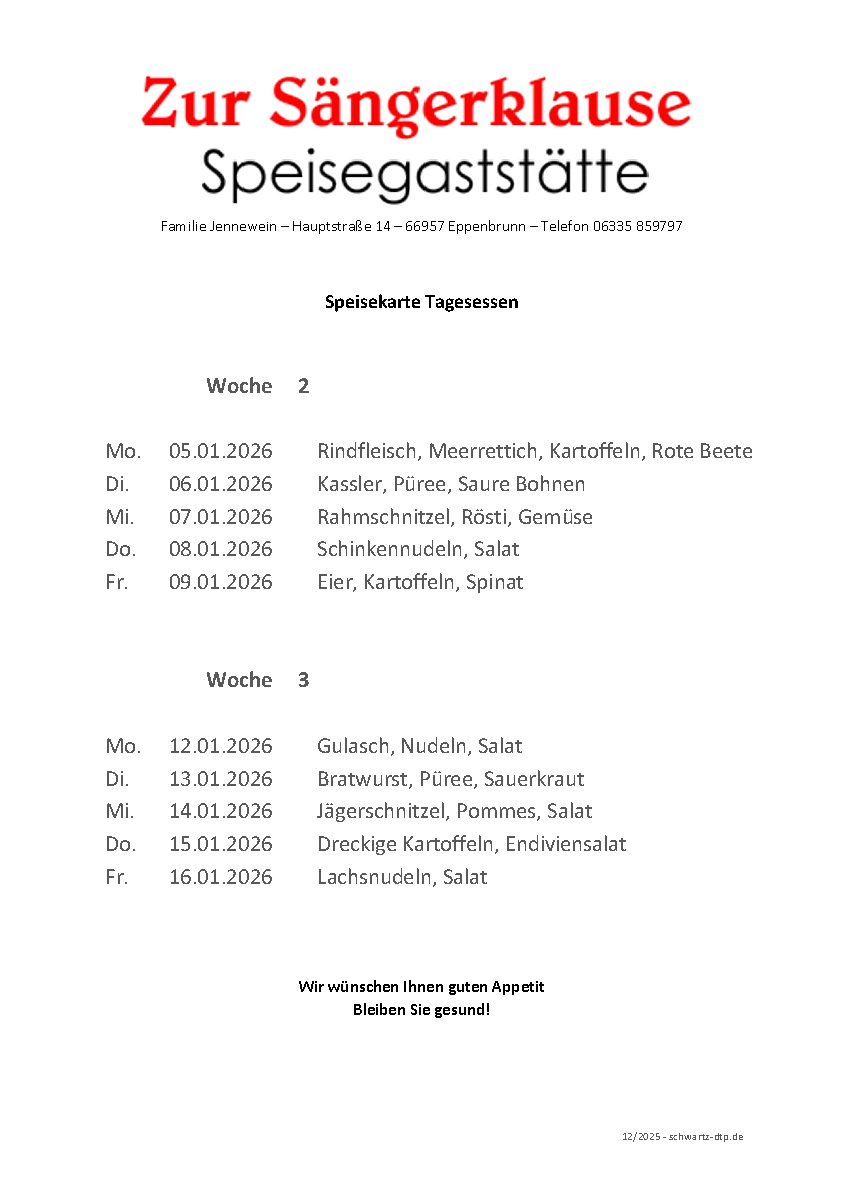 Speisekarte Wochen 02/03 2026